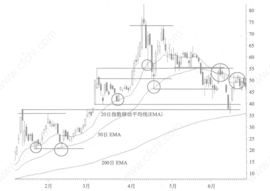 趋势明显的股市会有明显的S/R线。移动平均线的上升或下滑都不断地展示着重要的临界点。经济学书、技术分析手册还有股票制图的程序中都收录了不少大众化的设置。最流行的计算方法是画出20日、50日和200日的移动平均线。大家都普遍认为这三条线是价格反弹的自然临界点。有两股重要的力量在推动着这些平均价格。首先,它们确定了某些价位指标,如有重大价格变动,收益或损失的程度将会降低。其次,大家普遍的认知使普通投资者在看到靠近某些价位时,做出自圆其说的操作。