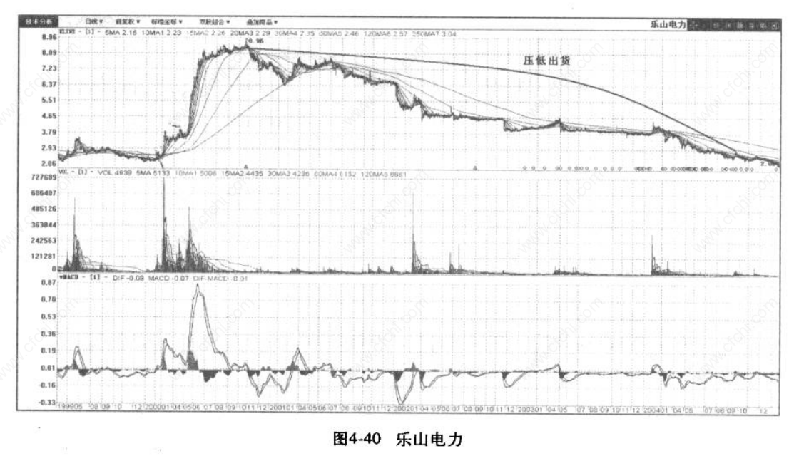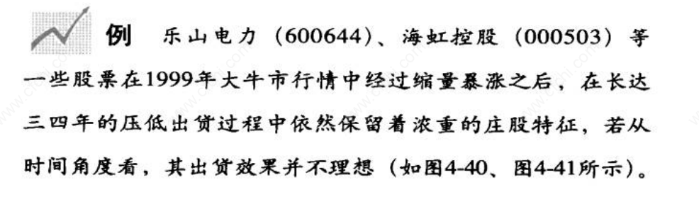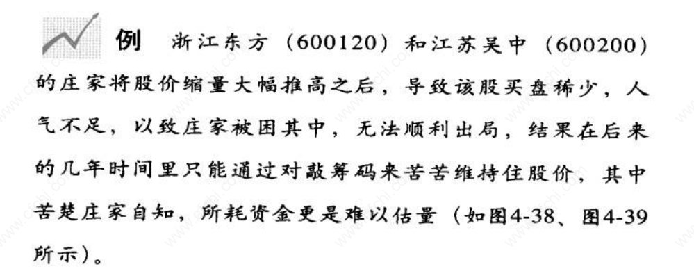 庄家对于无法出局的尴尬情况的处理,通常还有两种下策:--是大幅杀跌股价认赔出局,不过这样的庄家比较少见﹔二是靠真`金白银对敲维持股价,伺机出局,当时很多庄家也都选择了这条路。