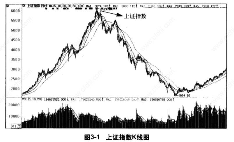 但是,2007年10月份之后,由于受到全球金融危机的冲击,上证指数一路下跌,进入2008年下半年之后,政府推出的一系列经济刺激计划,经济开始复苏,上证指数也随之上扬、如图3-1所示。