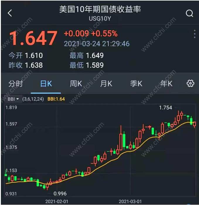 美国10年期国债收益率,暂时调整了数个交易日,回落到了1.7%以下。