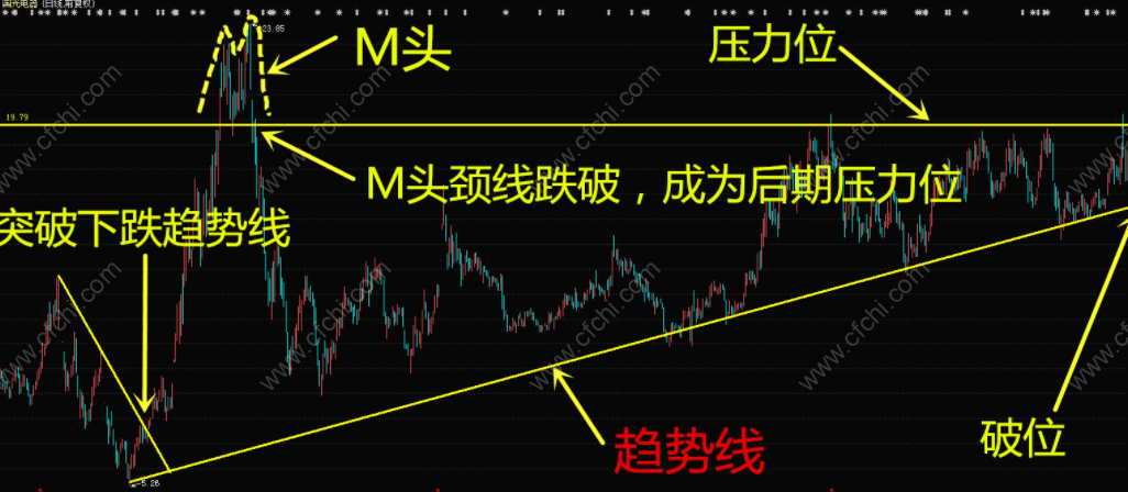 ③如果新一轮的下跌趋势形成,股价又回升到趋势线附近时,是卖出的时机。
