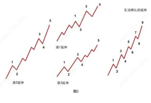 ⑤第5浪(推动浪)的涨幅或小于3浪涨幅,常形成反转形态,市场情绪乐观时有延长浪。