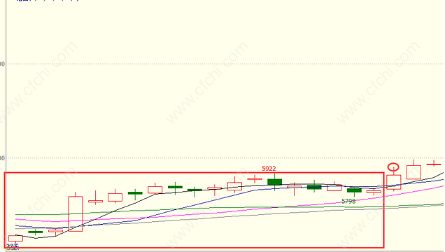 我红圈的那个位置就突破了,价格达到了5923的一瞬间,买入开仓。