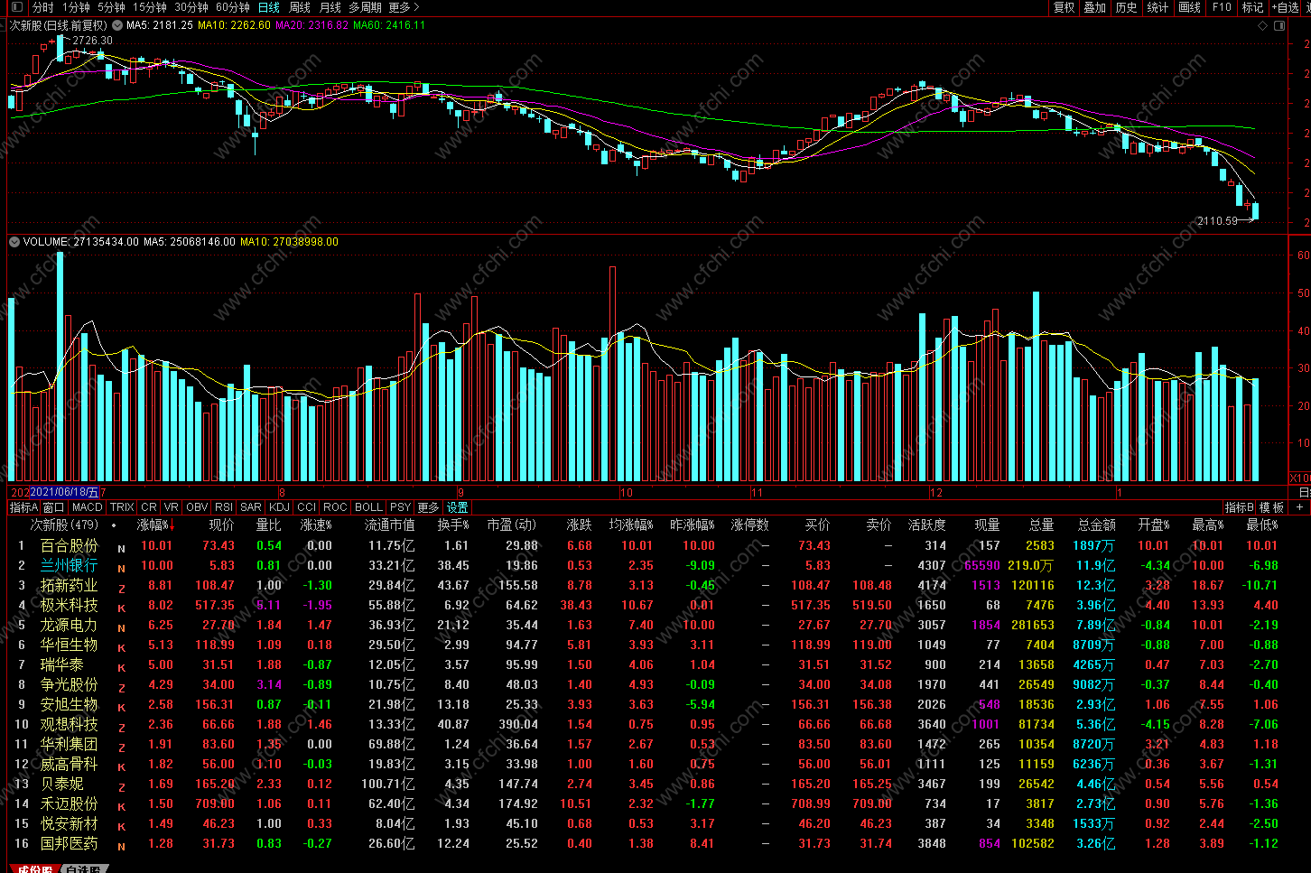 次新股疯狂的赚钱效应是让人眼红的,开板之后继续往上走30%的次新股不计其数,100%涨幅的也不在少数,走势凌厉,让人欲罢不能。
