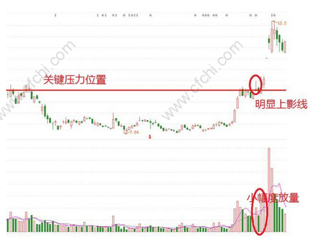 上影线战法的含义当日线级别上K线出现明显的上影线,一般上影线的长度是K线实体的两倍以上,当实体K线长度较短的时候,K线形态上要留下明显的上影线,而且上影线是越长越好,而不能仅仅认为当日K线上存在上影线的情况,就定义为上影线战法中的K线形态,具体参考下图案例: