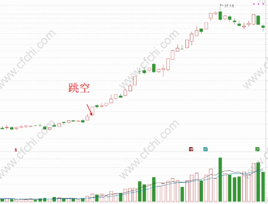 股票连续跳空往往是极端行情的展现,向上连续跳空意味着连续大涨,向下连续跳空意味着下跌。这样的缺口往往反映出股票朝着某个方向运动的较强动力,缺口的宽度就表明了这种运动的强弱。一般来说,缺口越宽,运动的动力就越大,反之就越小,缺口数量越多,那么反应地就是动力越大,行情将持续。