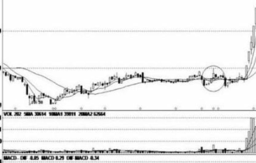 主力在当天盘中一度放量冲高,之后以回头波展开调整,故而在当天形成较长上影线。这种方式主要是为了测试盘中抛压力度,以此判断筹码的稳定程度,同时也吸引市场跟风者的注意力,为后续操盘打下基础。这种试盘方法在当天盘中攻击时,以冲击型量峰为主,说明主力在短时间内快速投入资金拉高股价。当股价上涨到一定幅度后,主力在盘中撤出买盘资金,观察卖盘!压状态。由于处于主导地位,主力可以从当天股价冲高回落过程中获得真实的盘面买卖信息。