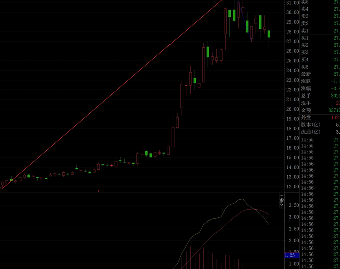 (4)、高位盘整形态出现的时候,如果股票价格是以阳线或大阳线收盘的话,股票行情也处在K线图中的中期均线系统上方运行的话,说明股票的价格已经进入了中期上涨的趋势了,这只股票有很大的概率在中期行情持续走高。