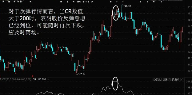 所谓CR指标指的就是能量指标,CR指标又叫中间意愿指标,它和AR、BR指标又很多相似之处,但更有自己独特的研判功能,是分析股市多空双方力量对比、把握买卖股票时机的一种中长期技术分析工具。价格动量指标(CR)能够大体反映出股价的压力带和支撑带,弥补人气指标(AR)、意愿指标(BR)的不足 。