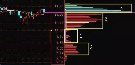 3、直观看出不同位置的价格和持仓份额,(由下往上)看到最低持仓成本与最高持仓成本,什么价格位置持仓的份额最多,什么价格位置持仓的份额最少。