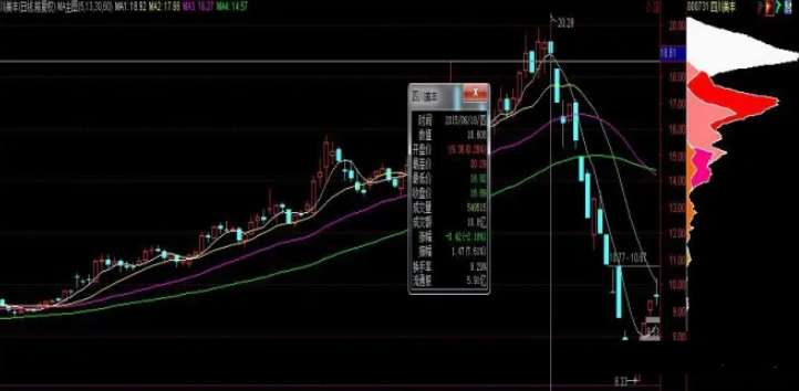 2.股票出现深度回调时,股价介于多峰筹码之间。当股票再次上涨时,股价穿透高筹码密集区而成交量增加不明显,说明这部分的筹码是主力筹码;