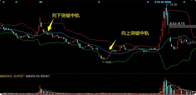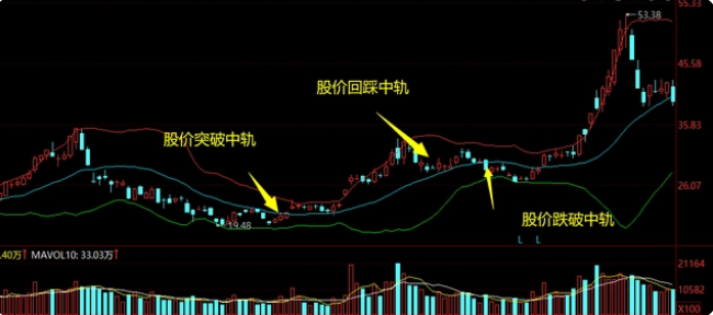 一般来说,上涨行情当中,股价会沿着中轨线和上轨线形成通道上升,这个时候投资者应该的操作就是持股待涨;当股价不能再出及上轨线的时候,表示上涨趋势减弱,应准备离场;而一旦股价下跌破中轨线,那表示下轨趋势就已经形成,交易者呢应该减仓操作;如果布林线的曲线同时向下。则更能够确认下跌趋势。这个时候我们应该坚决的离场。