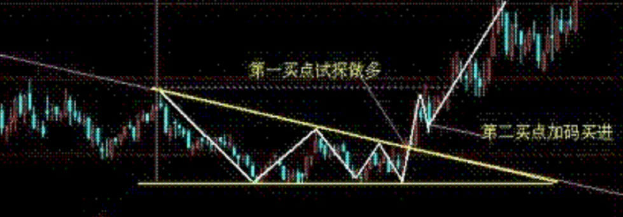 1、如果在上升途中的收敛三角形被有效突破压力线,股价后市看涨。