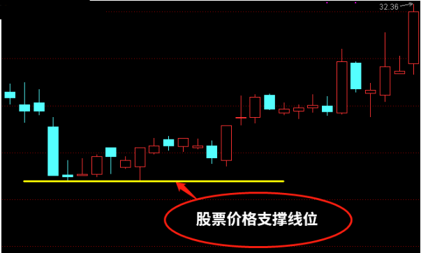 一般情况下,投资者可以通过价格的价格变动来寻找盘面或者股票价位的支撑位和压力位。如果股票价格在上涨或者下跌过程中,出现下跌到股价在一个价位点位区间就出现上涨反弹,在该价格点位出现多次这样的情况形成价格连线,这根线的价位就可以作为技术支撑位参考。当股价再次下跌到技术支撑参考位无法有效跌破,投资者就可以考虑后续反弹买入或者持股参考信号。(如下图所示)