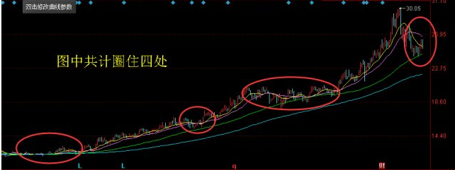 反过来说,股价跌到这个区间也不会是一个小跌,时间也相对较长,价位比较实在,向下打压一般是要靠市场的利空传闻,否则反而损失筹码,那时庄家可能丢掉明天的饭碗。同样,这两条均线单独出现上述情形时也会起到相同作用,只是力度相对较弱而已。