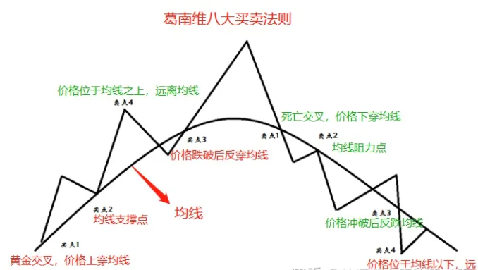 144均线系统也可以用来判断进出场点,最经典的用法是葛南维八大买卖法则,也即利用144均线和K线的形态变化,来判断进出场位置。