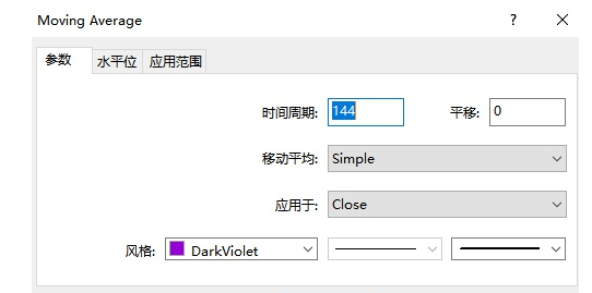 如果你需要144均线指标,直接在MT4软件中,插入——趋势指标——Moving Average ,时间周期设置为144即可。如果做短线交易选择15M或1H,如果做中长线交易选择D1。