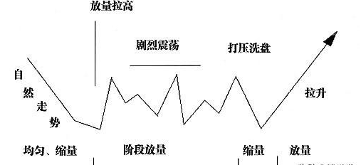 1、突然拉高或打压造成股价阶段放量,剧烈震荡进行吸筹,快速打压洗盘、V形反转、拉升