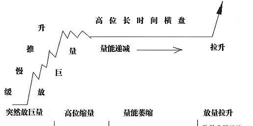 4、放巨量缓慢推高、高位横盘、直接拉升