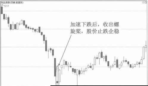 (2)在股价有较大跌幅后出现螺旋桨为见底信号。