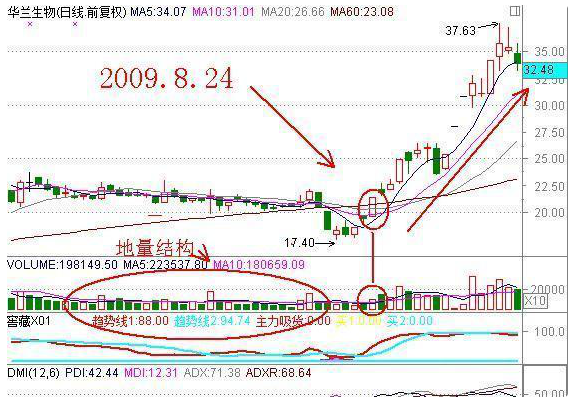 1、当股价长期在季均线之下滑跌,有一天突然放量冲过季均线并能收盘在季均线之上,这一根阳线称为芙蓉出水;