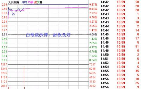 3.极强势品种:开盘后3浪封停、中间不开盘、封停量大。股价处于日、周线图上涨初、中期。