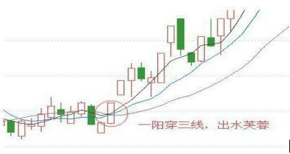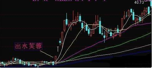 出水芙蓉是K线与均线结合的产物,是指横盘整理或下跌中一根长阳线突破短期均线的系统,顾名思义这就是出水芙蓉的形态,一根大阳线上三条均线,并且均线呈多头排列,后势看张,江湖人称“一阳穿三线”