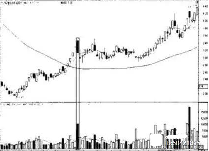 形态上已经破位的巨量阴线,让技术派纷纷抛出筹码离场。但该股在次日立即马上止跌回升,重新展开了一轮上升行情,洗盘当日被震出局的投资者后悔莫及。