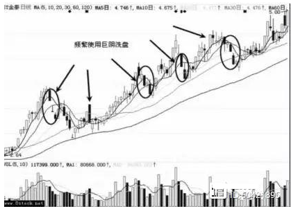大阴线洗盘是最为常见、主力使用最多的洗盘定式之一。大阴线洗盘属于主力打压式洗盘方式中的一种,采取打压震仓的主力往往实力雄厚,有力量控盘,否则既无较多筹码打压,在散户恐慌时下档也无资金接盘,反而会使局面变得不可收拾。