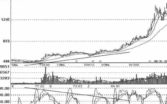在平衡市或下跌趋势中,KDJ指标只要进入超买区,就需要准备卖出。一旦出现高位钝化,就应坚决清仓出货。但是在主升浪行情中,KDJ指标的应用原则恰恰相反,当KDJ指标反复高位钝化时,投资者可以坚定持股,最大限度地获取主升浪的利润。而当KDJ指标跌入超卖区,投资者要警惕主升浪行情结束。