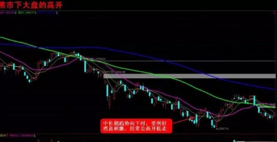 ①大盘指数的60、120日中长期均线向上,保证大盘的中长期趋势向好,整体操盘环境较暖,利于短线操作。若大盘的中长期趋势向下,突然受某种利好而造成早盘高开,特别是高开在离中长线压力线不远的地方,则往往会高开低走,此时万万不可介入,相反是逢高逃出的时机。(在熊市中,每一次高开、每一次反弹都是你逃跑的机会,而不是介入的机会,是让你跑的,而不是让你搞的;而牛市中的每一次回调都是介入的机会)