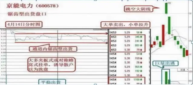 2、锯齿形出货:“锯齿形出货形态”是一种温和的出货方式,庄家靠构建高位平台来培养市场一种希望股价向上“突破”的心理期盼,正是在这种心理期盼下不知不觉地来接主力手中的筹码。