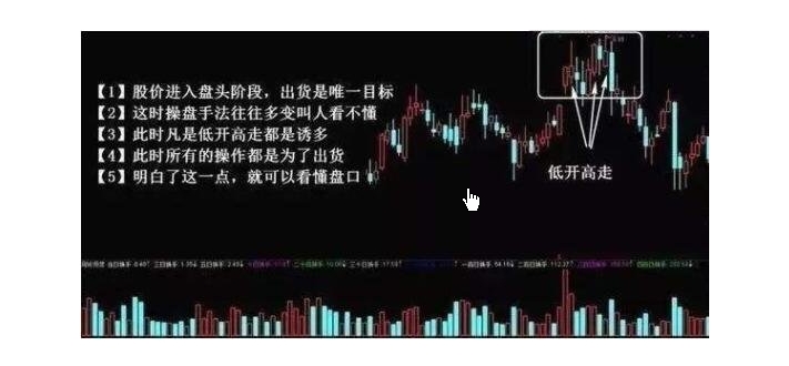 大多数情况下,低开高走都是主力资金洗盘的动作。大部分散户看见股票低开,就会认为股票会继续下跌,从而被主力资金清洗出局。如果是在上涨的行情,而且上涨的幅度比较大的时候出现了低开高走,这个时候就要小心,不要轻易入场。此类情况很有可能是主力资金制造的假象,为了吸引跟风盘接盘以达到出货的目的。
