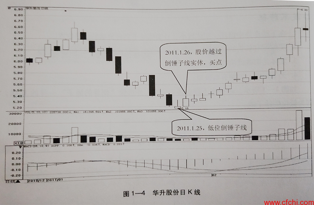 1.从倒锤子线的形成过程可以看出,该形态的反转意义并不是十分强烈,因为空方仍然占据优势。倒锤子线非常需要进一步的看涨信号来验证。
