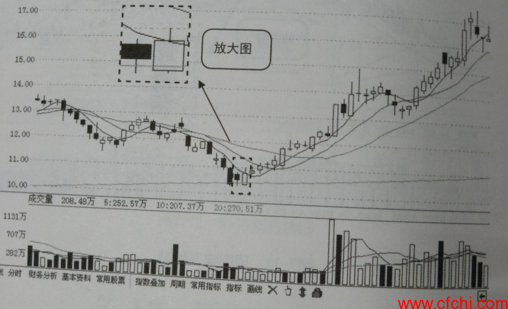 (2)第二根阳线吃掉之前的K线越多,转涨力度越强: