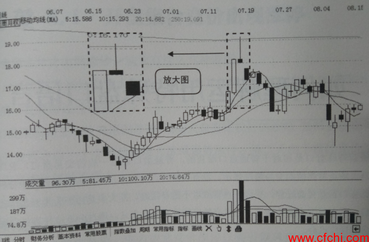 其实倒锤头非常类似于顶部的“射击之星”形态,是一个较为明确的离场信号,如果当天收阴其短线见顶信号更明确,操作上建议一旦遇到此类走势最好暂时离场观望为妙,如果不死心,可在第二天股价维续走低时坚决离场,否则可暂时持股观察。