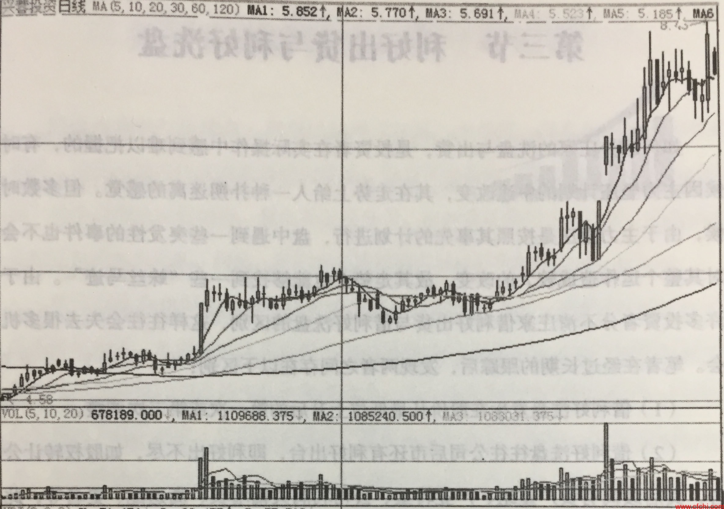 11-2是兴着投资在震荡洗盘时的量价关系。从图中我们就可以看出,涨时放量,跌时缩量,到后期量能更是缩小到极点,伴随着拉升进 一步放量。量价关系是大盘上涨的坚实基础。 量价的背离同样预示着行情的不长久。在图中我们也可以看到“三线汇流”的均线系统组合。大胆买人就是最好的做法。
