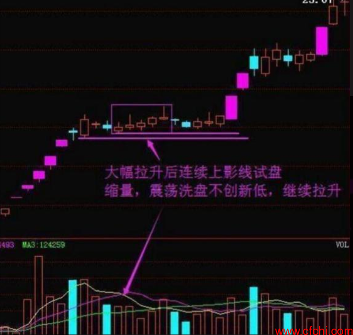 洗盘结束的特点。在上述缩量时并不是最佳买点,因为庄家有可能继续缩量洗盘,前景并不明朗,所以在确定洗盘结束时是最佳买入点。其特点如下。