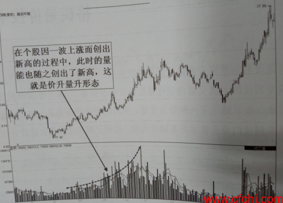 如图1所示为盾安环境2010年5月至2011年3月期间走势图,从趋势循环的角度来看,此股在此期间正处于震荡上行的上升趋势中,在个股一-波上涨且创出新高的过程中,此股的成交量也随之同步放大,且创出了升势过程中的新高,这就是升势中的价升量升的形态。它的出现说明市场买盘资金十分充足,个股随后仍有一定的上涨空间,是当前应持股待涨的信号。
