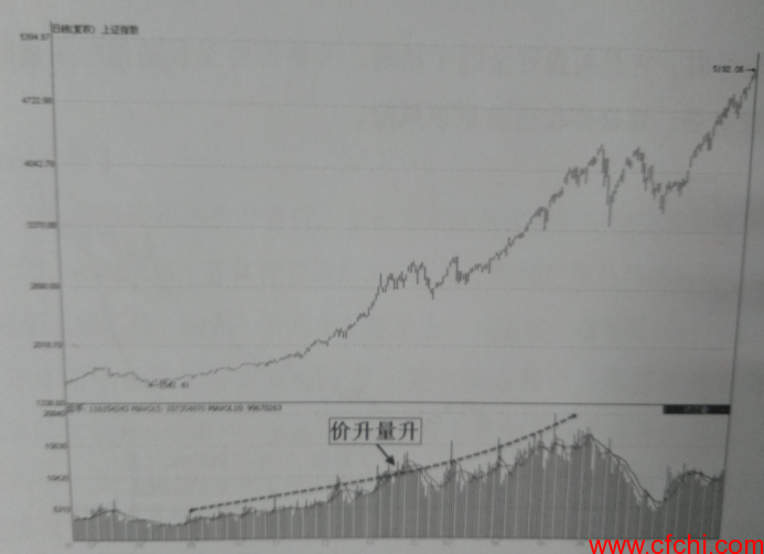 如图2所示为上证指数2006年6月至2007年8月期间走势图,股市在步人升势后,出现了形态十分鲜明的价升量升的配合关系,这是股市上涨动力充足的体现,说明股市随后仍有较大的上涨空间。
