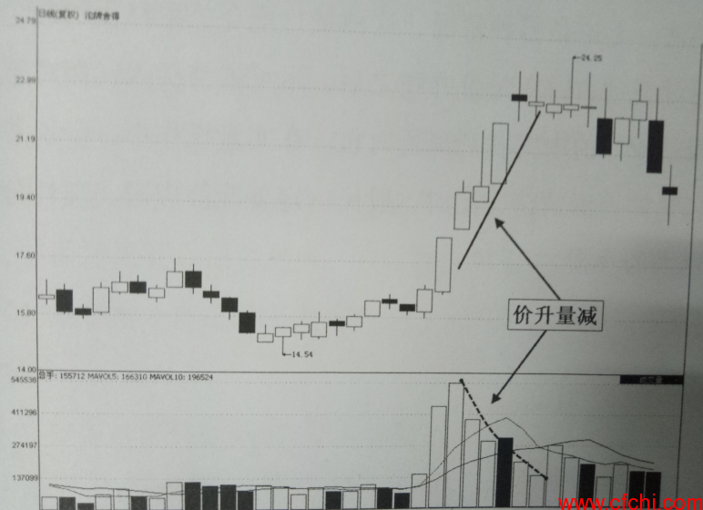 前面所讲到的价升量、价量价背离这两种量价配合关系均是从价格整体走势出发的,它们均属于整体性量能形态,有助于股民把握趋势的运行节奏。但是,价升量减形态则不然,它是一种局部量能形态,只适宜于指导股民进行短线交易。
