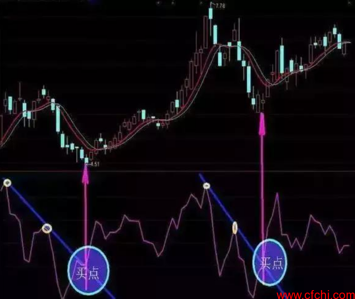 当BIAS线从下向上穿下降趋势线后,你果断出手,九生一死,基本能做到一剑封喉!BIAS下穿上升趋势线卖出绝技,方法一样!