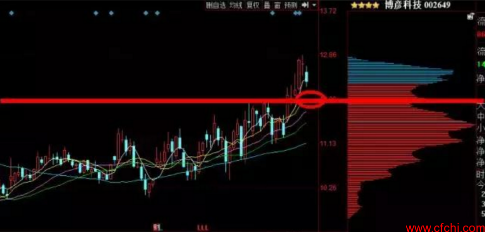 解析:压力位突破针对的是横盘突破,这只股底部多阳洗盘法,所以突破是买点。