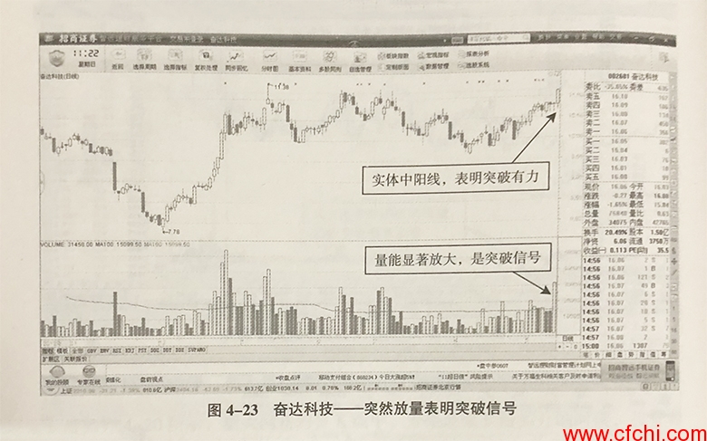 奋达科技—突然放量表明突破信号,如图4-23所示。