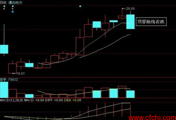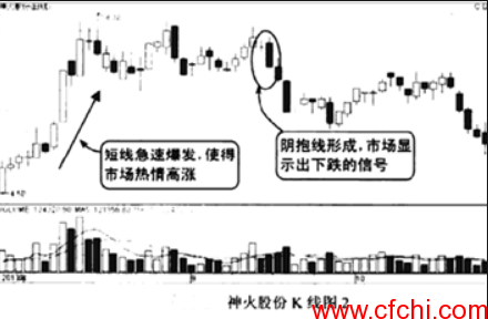 2.阴抱线的第二根K线是一根实体较长的阴线,这样的抱线显示的是看跌信号,由此短线操作必须快速离场。