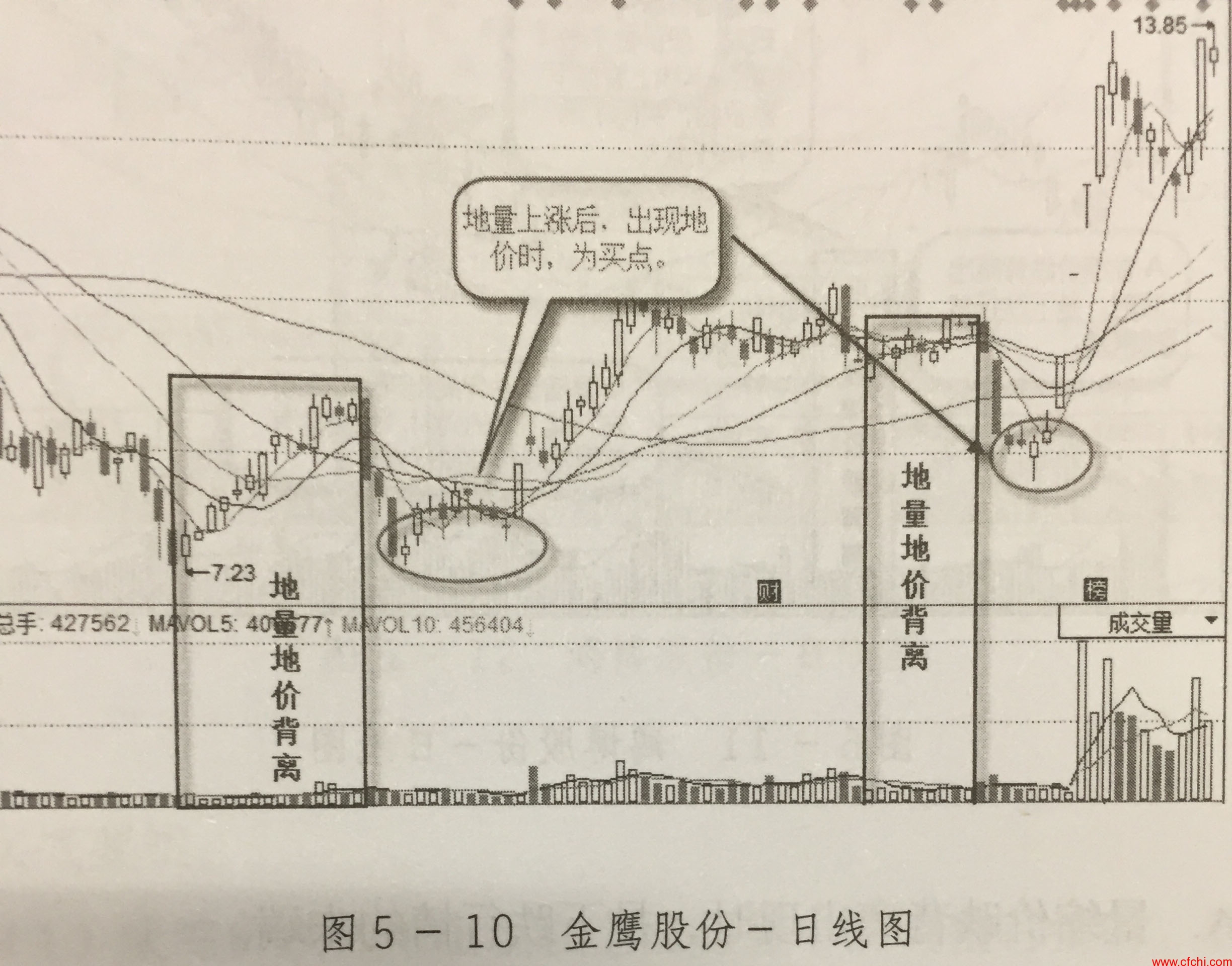 (2)地量中出现低价是在震荡上涨过程中,或是上涨后高位震荡中出现缩量,因为低量并出低价。所以,地量地价背离出现时,应在地量出现后出现低价时大胆买进。