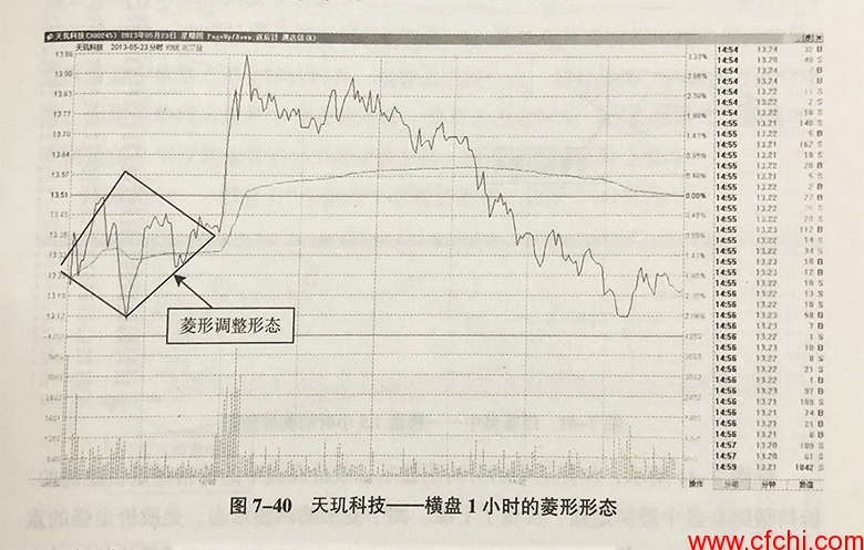 天玑科技——横盘1小时的菱形形态,如图7-40所示。
