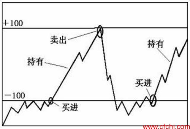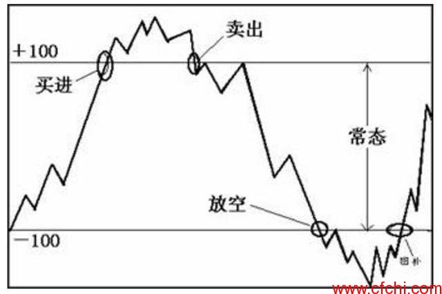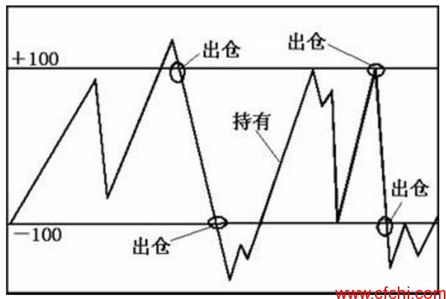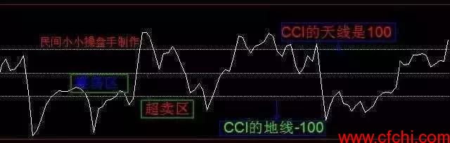 CCI指标没有运行区域的限制,在正无穷和负无穷之间变化,但是,和所有其它没有运行区域限制的指标不一样的是,它有一个相对的技术参照区域:+100和—100。如下图。