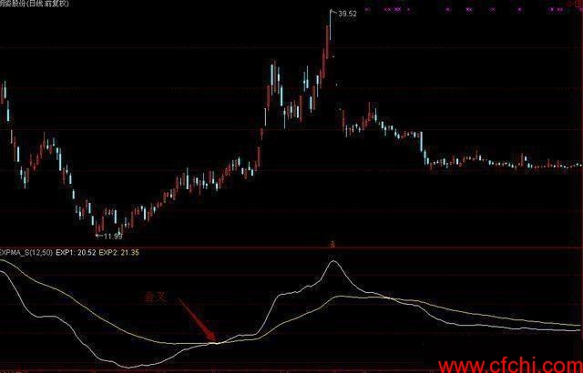 【CCI实战应用技巧】 1.操盘线:即EXPMA,属于均线型的指数平均线指标。原参数为(12,50),该参数属于中线参数,如果短线交易建议改为(7,21)。两条线的金叉作为买入的时机参考,特别是第一次金叉的成功率最高。