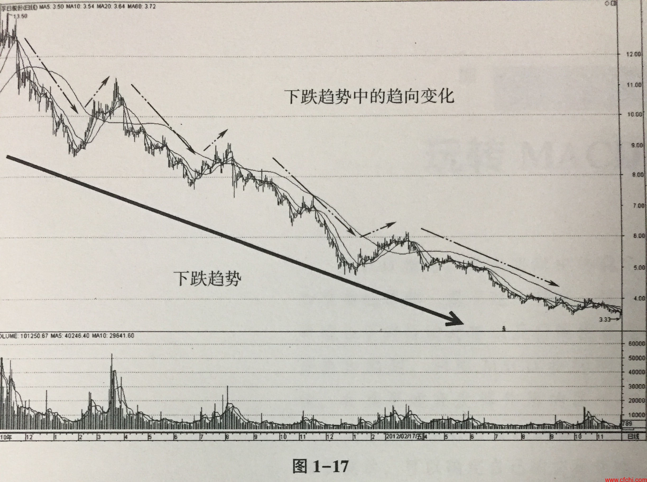 趋势(趋向)大致分为:上升趋势(趋向)、下跌趋势(趋向)。笔者认为,传统理论中的水平趋势或称横盘趋势,只是上升或下跌趋势的延伸形式,称为水平趋向或称横盘趋向也许更为准确。